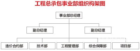 工程總承包事業(yè)部下設工程管理部、技術部、造價合約部、綜合保障部。四部門全面負責總承包項目的實施、運行和管理。其中,工程管理部主要負責項目的施工相關管理、組織、實施工作。技術部主要負責協調和處理EPC項目實施過程中所遇到的施工技術問題和設計問題,并結合業(yè)主方材料設備技術要求提出合理的詢價技術標準。造價合約部主要負責項目實施過程中的合同管理,合同風險控制、各專業(yè)分包合同擬定管理以及重要材料設備的物資采購詢價工作以及根據本項目的投資控制目標完成項目的投資分解、投資控制及資金支付相關工作。